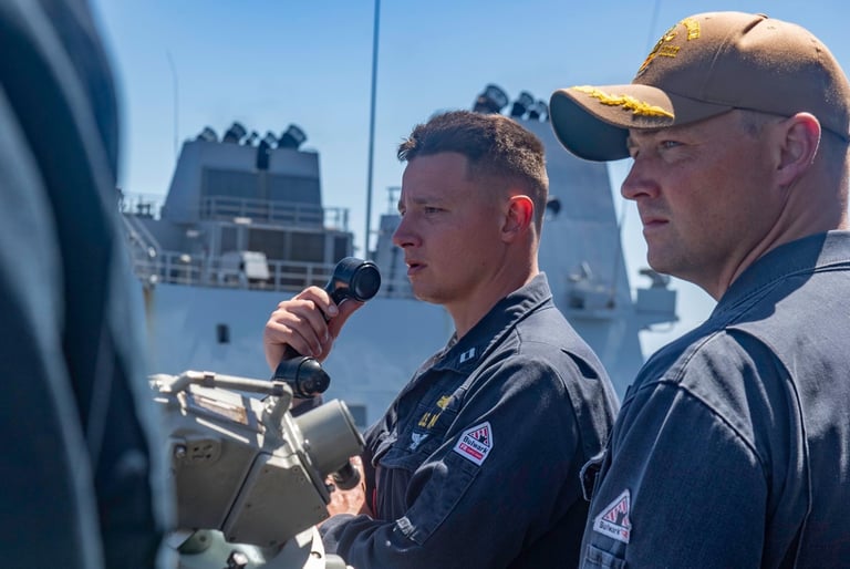 As Executive Officer and Combat Systems Officer aboard USS Spruance (DDG 111), Brad directed multidisciplinary teams responsible for optimizing sensors, weapons, and command-and-control systems for real-world operations. During the 26 September 2024 Red Sea engagement, he served as Tactical Action Officer, successfully directing the interception of multiple inbound Houthi terrorist ballistic missiles — a defining 30-hour battle that showcased his ability to lead with composure, precision, and clarity under fire.